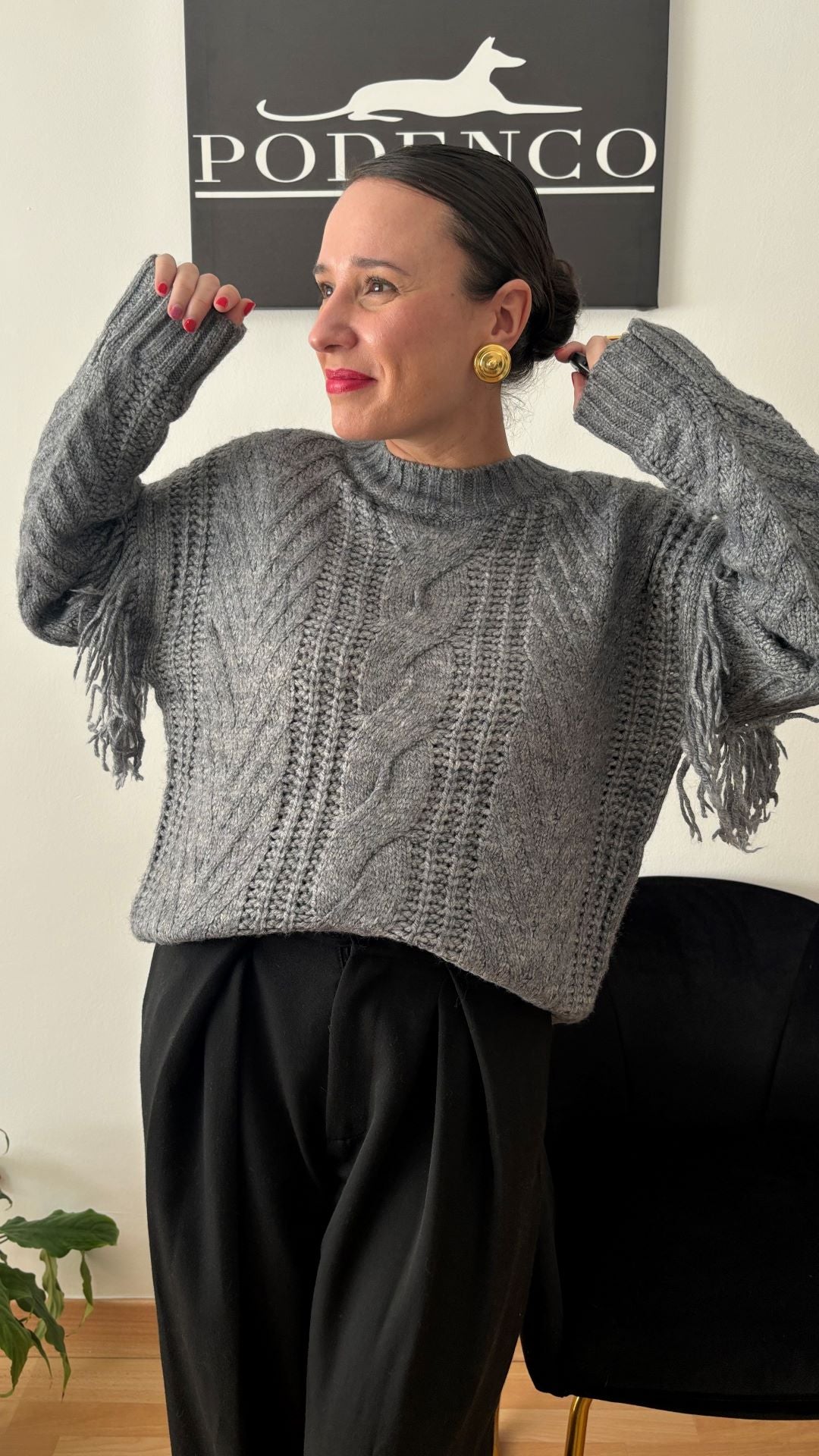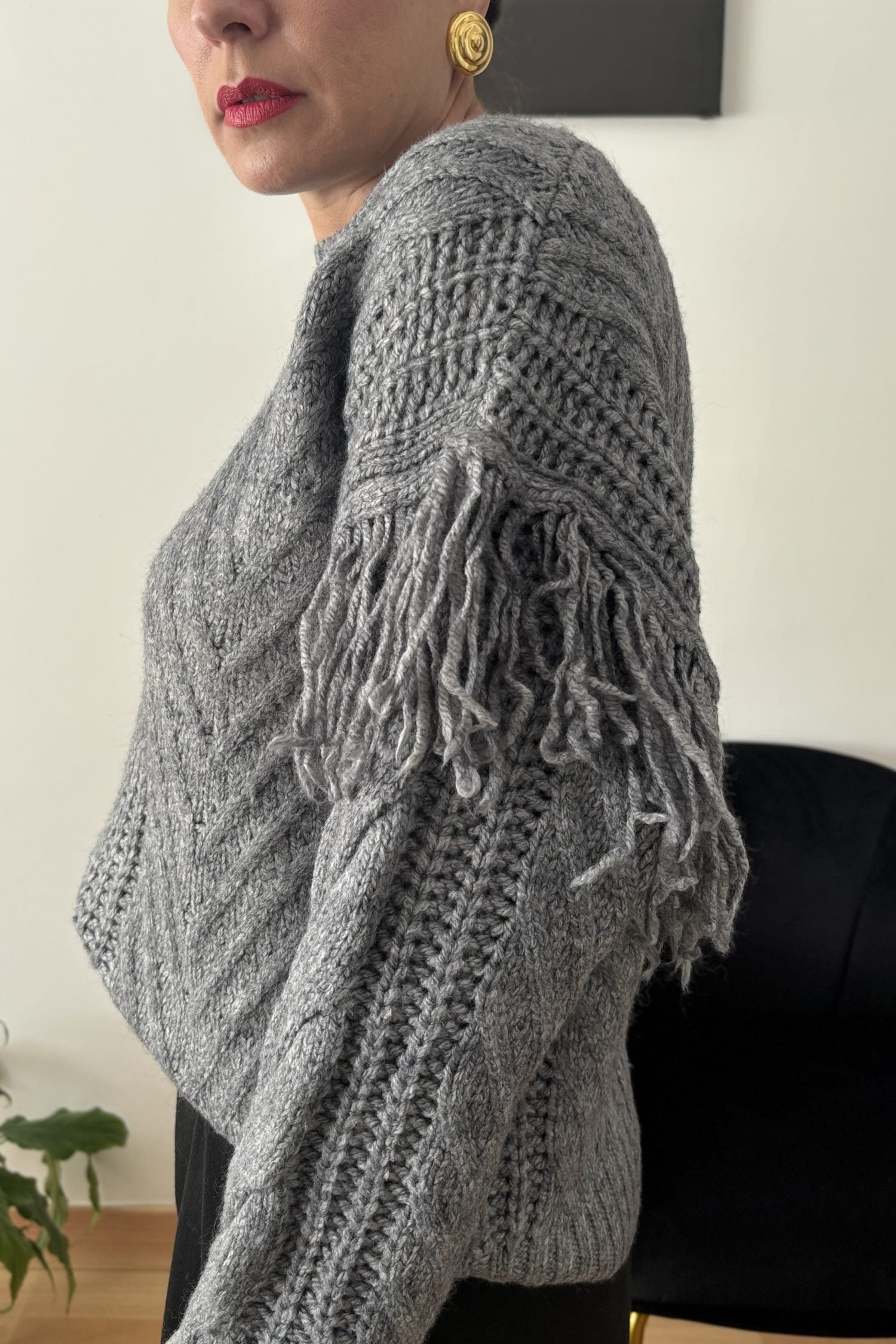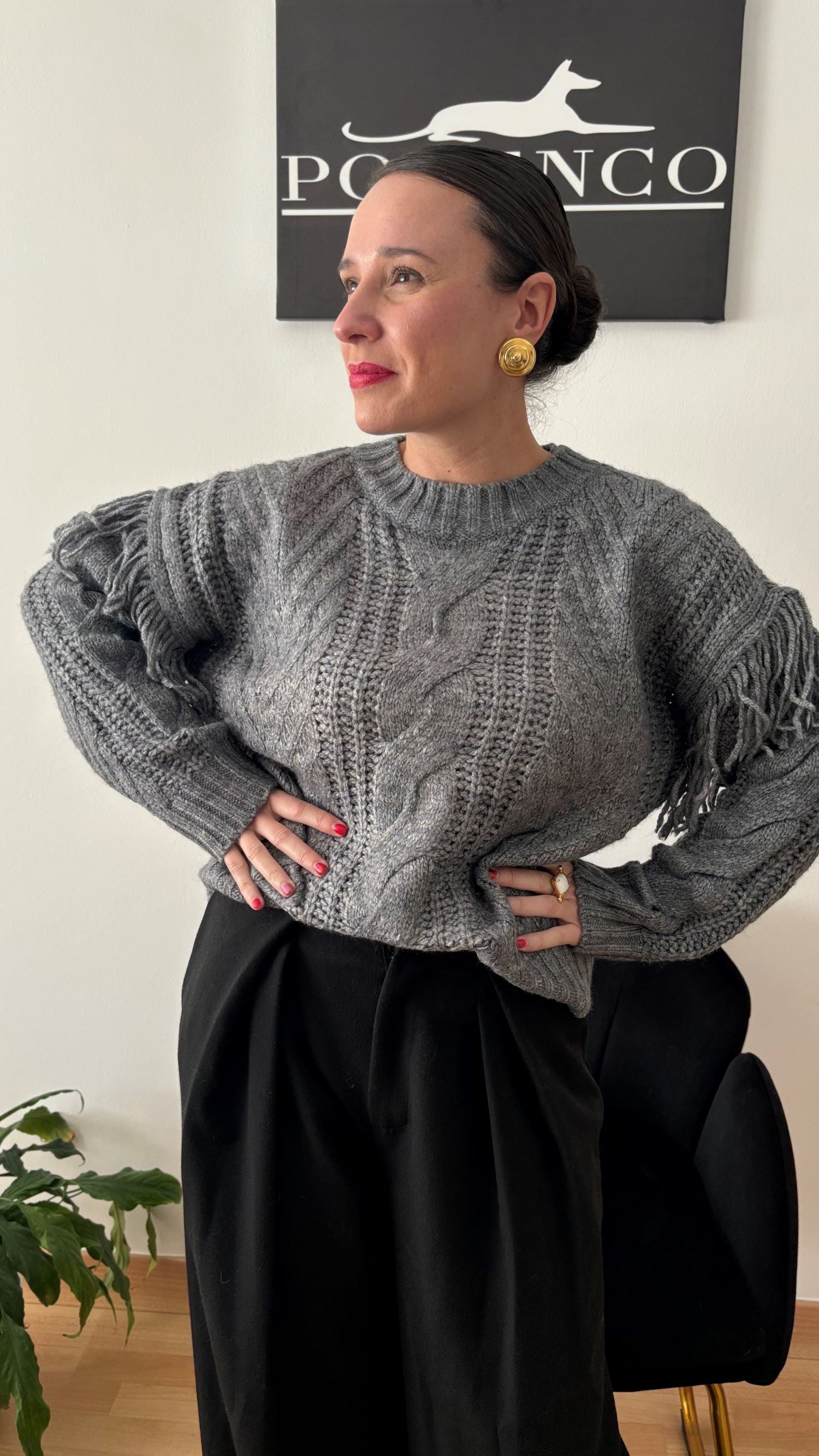 Detalles de diseño: Trenzados intrincados y flecos decorativos en las mangas.